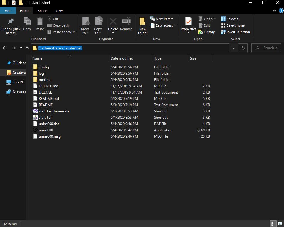 This will open a file explorer with a bunch of folders. The one we are looking for is called ".tari-testnet"